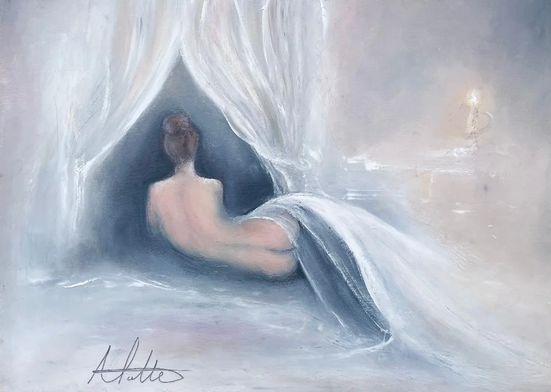 A unique, one-of-a-kind oil painting on fine art paper, interpreting the Tarot's Two of Cups—an emblem of perfect harmony and heartfelt connection.
